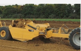 拖式鏟運機:工作時常由履帶式拖拉機牽引,具有接地比壓小、附著能力大和爬坡能力強等優點,在短運距離和松軟潮濕地帶工程中普遍使用。