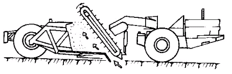 普通式:也稱開斗鏟裝式,靠牽引機的牽引力和助鏟機的推力,使用鏟刀將土鏟切起,在運行中將土屑裝入鏟斗,其鏟裝阻力較大。