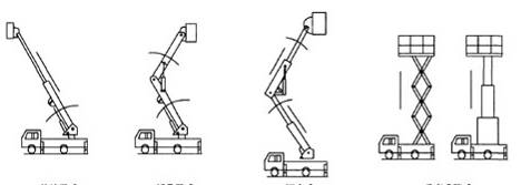 按上車部分的升降機構的型式,高空作業車可劃分為四種基本型式,見圖。